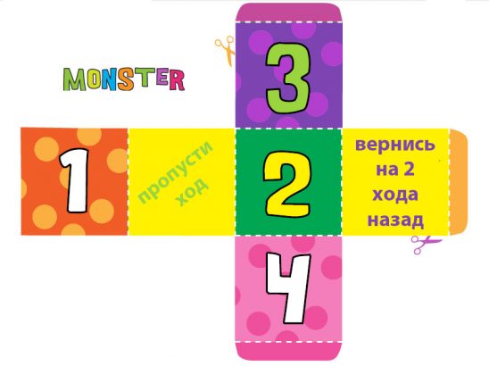 - Параллельно распечатайте шаблоны настольных игр, в которых могут пригодиться игральные кубики.