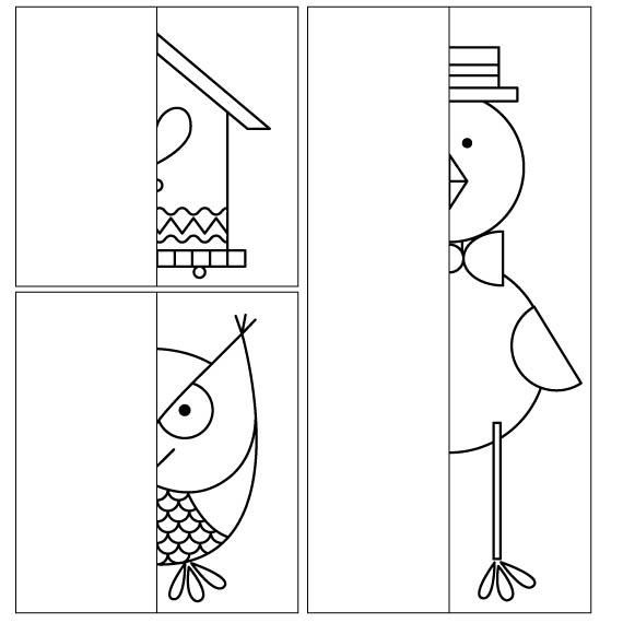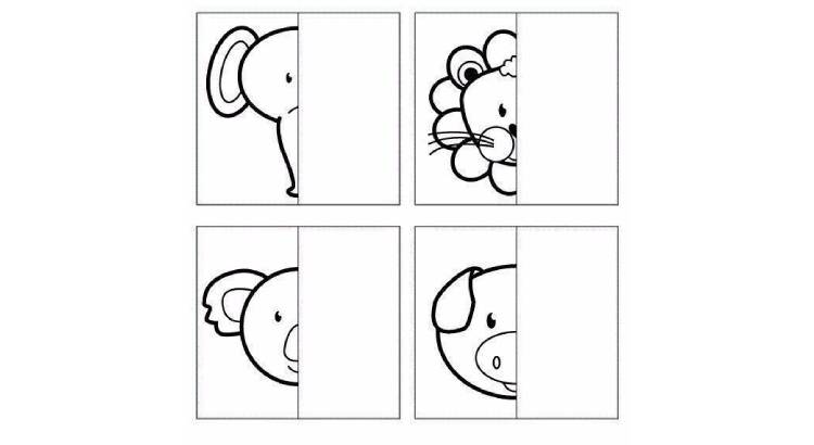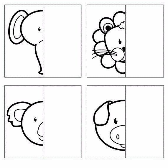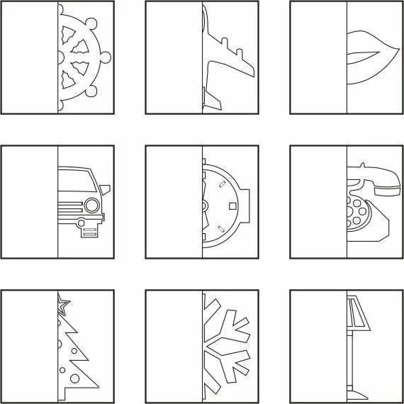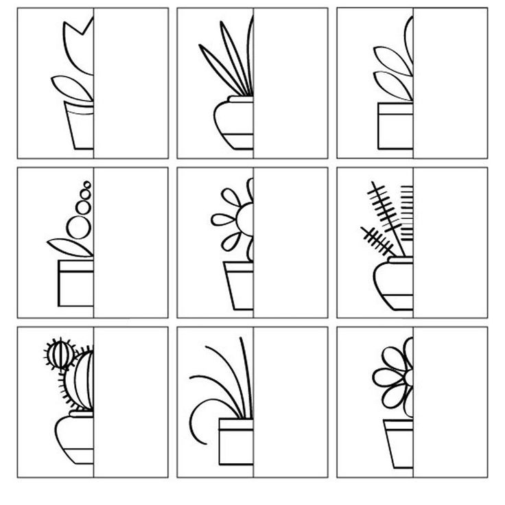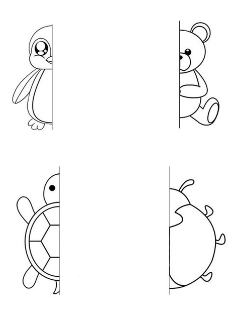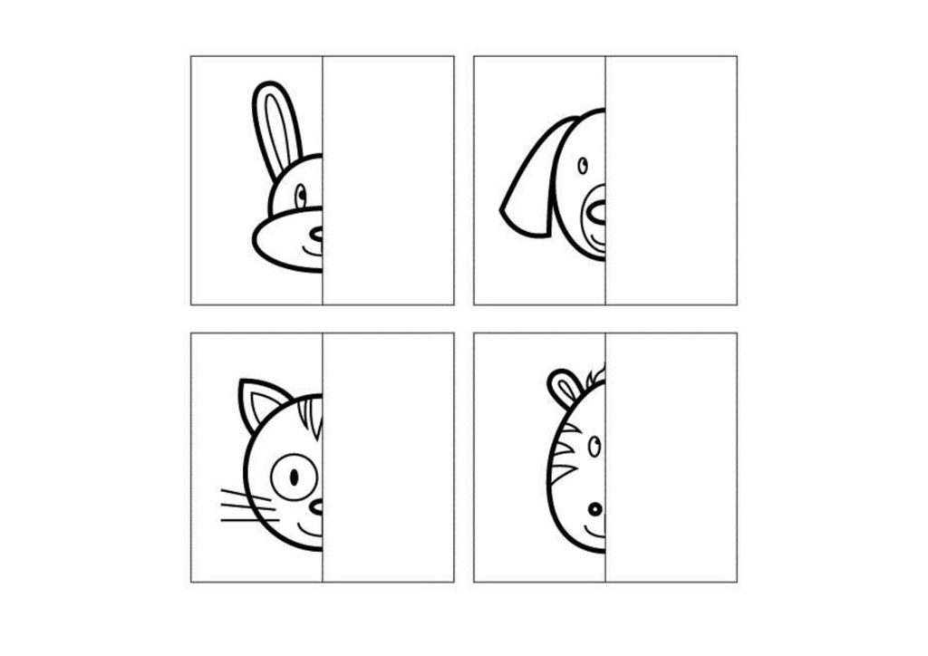 Развивающая игра на бумаге для детей “Дорисуй вторую часть картинки”